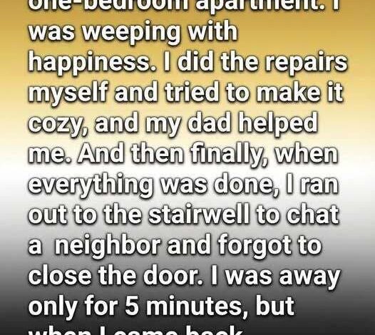 That afternoon, everything felt calm, finished, settled. I had just placed the final picture on the wall—a small framed print that stubbornly leaned slightly to the left no matter how many times I adjusted it. I smiled, telling myself I’d fix it later, and stepped into the hallway to exchange a few words with a neighbor I’d seen a handful of times before.