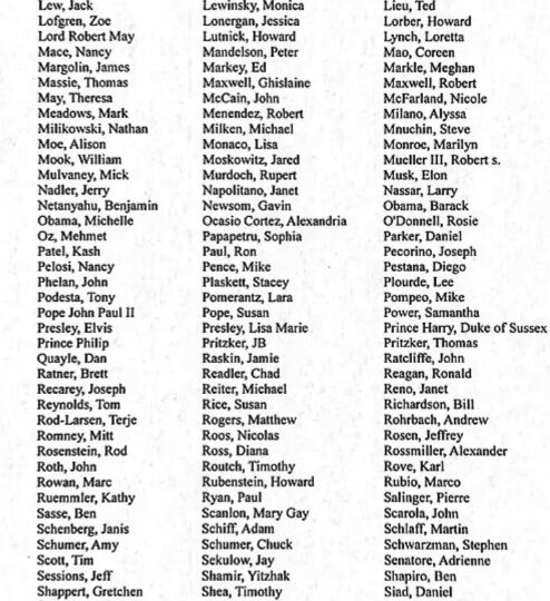 “References appear in a wide variety of contexts. Being named does not assume any guilt or wrongdoing with respect to Epstein’s criminal activities.”