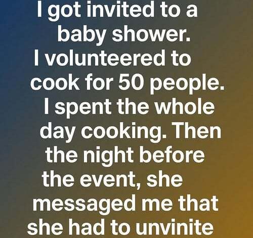 The message came late, after the food was finished and packed. I assumed it would be a quick logistical note. Instead, it was a brief, blunt statement telling me I was no longer invited. No explanation. No acknowledgment of the work I had done. Just a sudden exclusion.