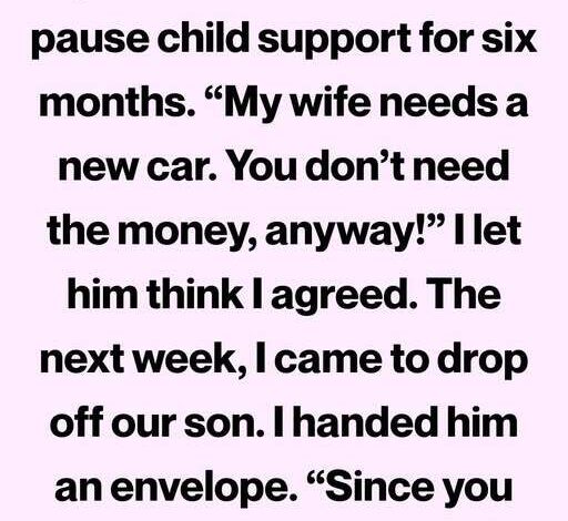 WHEN MY EX TRIED TO CUT CHILD SUPPORT TO BUY HIS NEW WIFE A CAR, HE EXPECTED ME TO SACRIFICE OUR SON’S NEEDS—BUT THE RESPONSE I GAVE HIM FORCED HIM TO FACE THE TRUTH ABOUT RESPONSIBILITY, PARENTHOOD, AND THE CONSEQUENCES OF TREATING SUPPORT LIKE A FAVOR RATHER THAN A DUTY